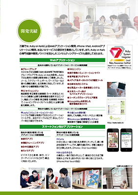 iPhoneをはじめ、新しいデバイス向けのアプリ開発を手がけていらっしゃる企業さんです。コーポレートカラー、イメージが非常にはっきりとして、コンセプト=構成イメージ、とりたててオリジナリティーを探す必要もないほどでした。